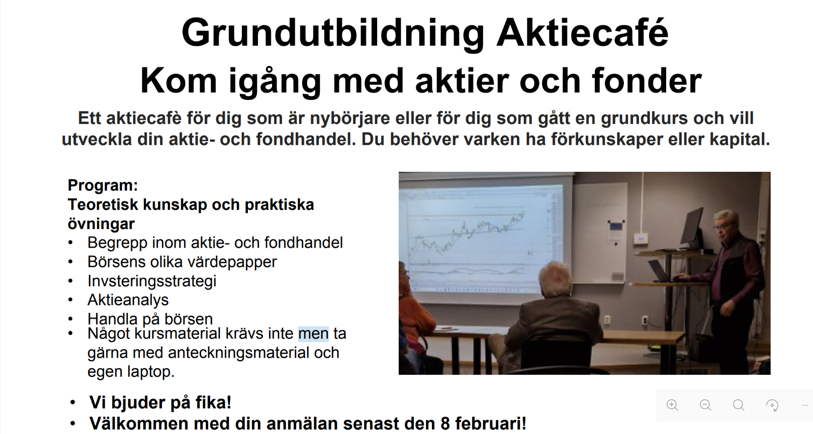 Det här eventet har redan ägt rum och går inte längre att anmäla sig till.Aktiecafe` på grundnivå