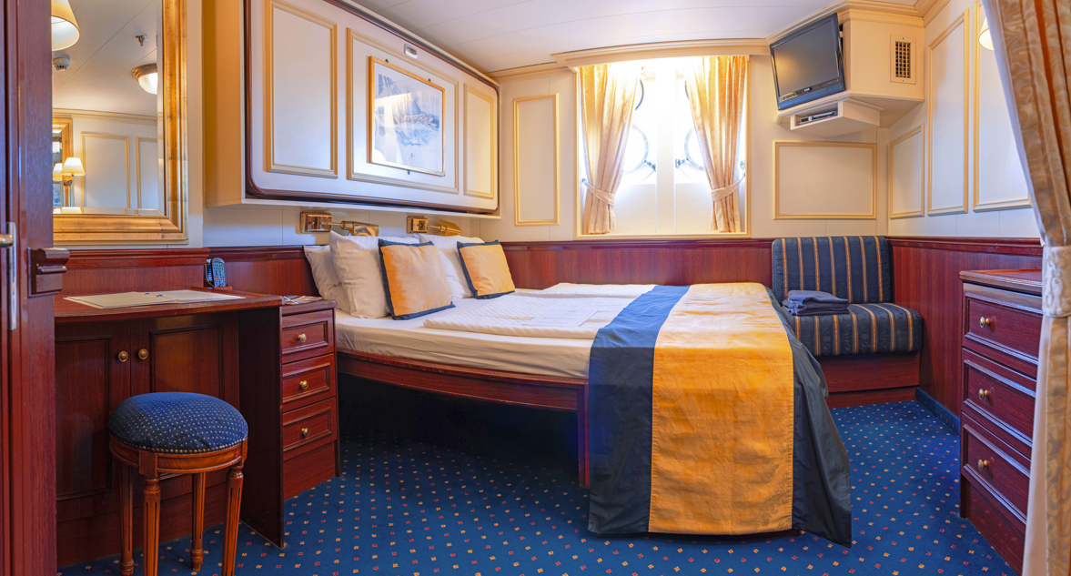 Samtliga hytter har fönster och dubbelsäng eller två separata lågsängar. Hytterna är cirka 13 kvadratmeter stora och har privat badrum, luftkonditionering, TV och DVD-spelare, telefon, hårtork, säkerhetsbox och plats för förvaring.