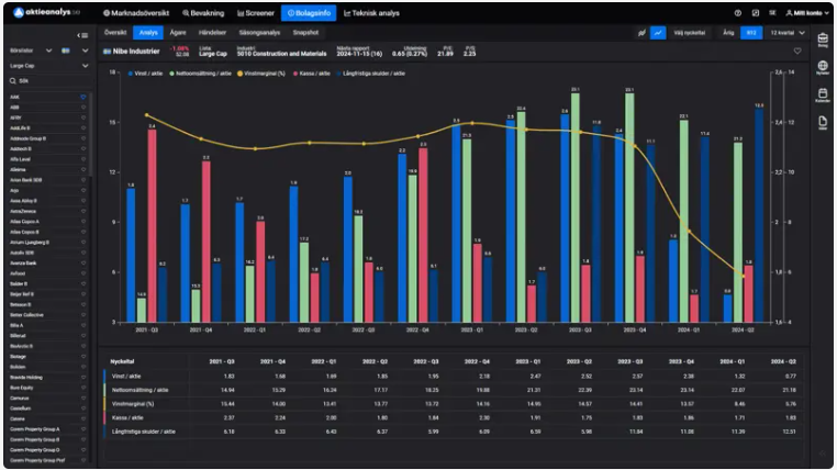 - Bolagets hälsa & flöden: Tolka fundamentala nyckeltal och se vad de "smarta pengarna" gör genom att analysera Insynshandel och Blankning.